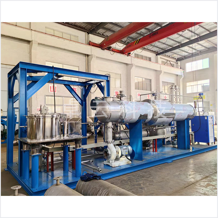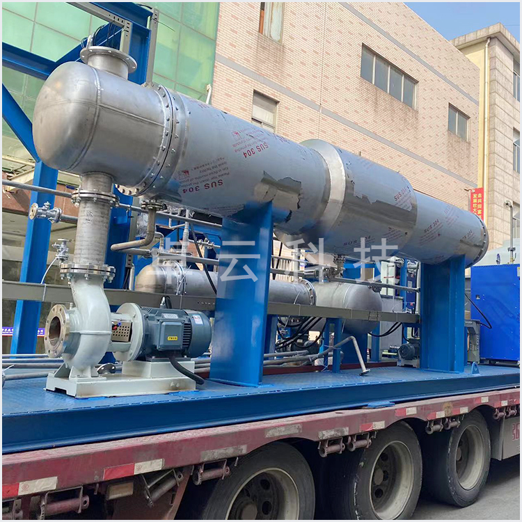 3、将具有强化传热、防垢性能优良的沸腾蒸发和强制循环蒸发的优势相结合,形成优势互补的浓缩方式。可实现强化传热,又能防止沸腾蒸发过程中加热管加热面产生结垢。通过在出料的三效加热系统中加设一套强制循环装置,使加热管中物料流速达到2.0m/s,达到强化传热的目的,这样就使得传热效率得到较大提高,同时由于保持了管束中料液的高速流动,也防止了结晶的物料在加热管内壁附着,进而******限度上阻止了结垢的产生。该装置广泛用于盐卤、芒硝、硫酸钾、氟化钠、烧碱、亚硫酸钠、硫酸锰、氯化纳、氯化钡、氯化钙、氧化铝、硫酸铵、氯化铵、硝酸钠、硫酸钠、硫酸镁、硫酸锌等溶液的沸腾蒸发结晶工艺。